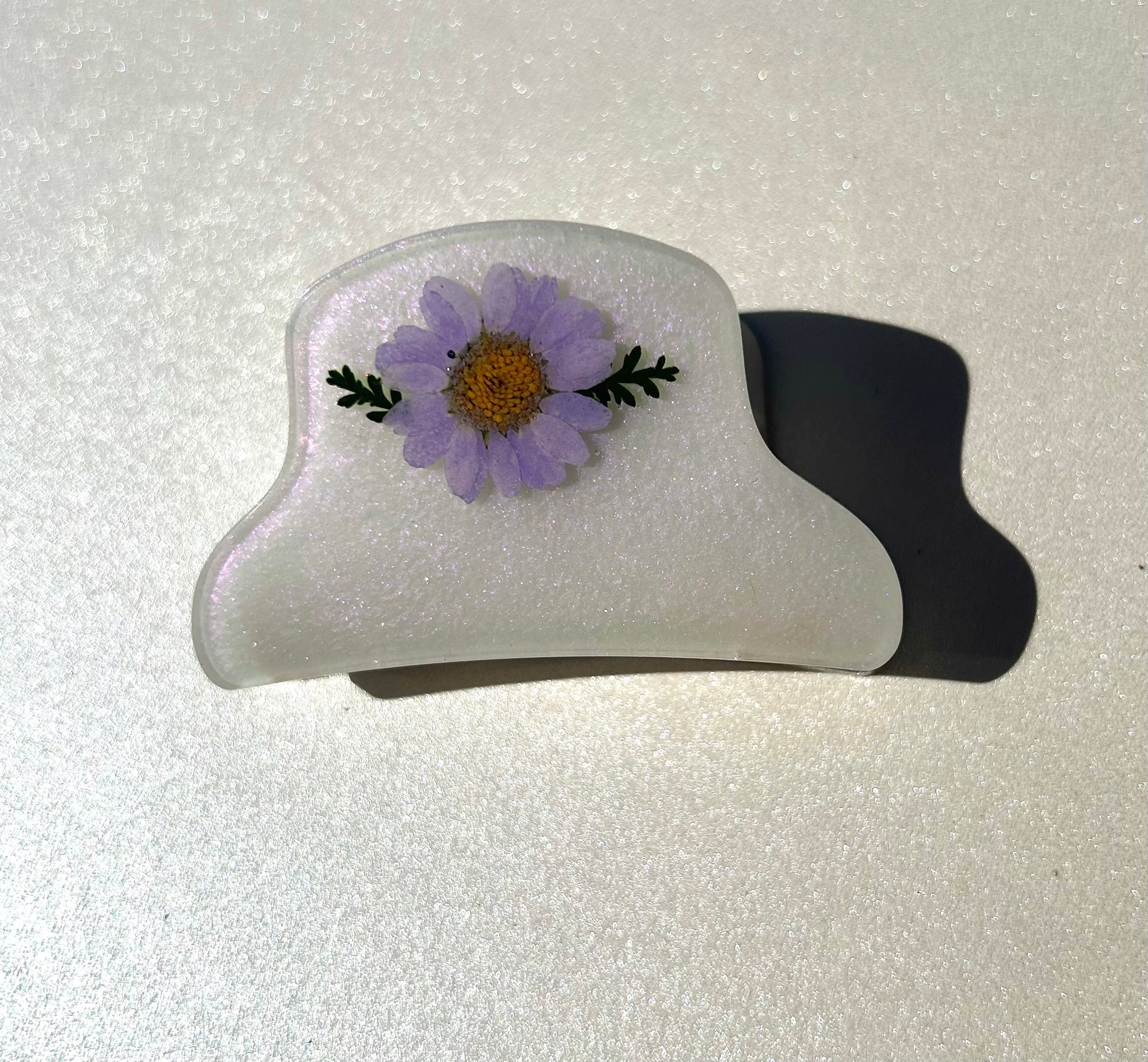 Expertly handcrafted and made with real flowers, this light pink hair claw effortlessly combines beauty and practicality. The resin material ensures durability while the delicate flowers add a touch of nature to your hairstyle. Elevate your look with this unique and stylish hair accessory.